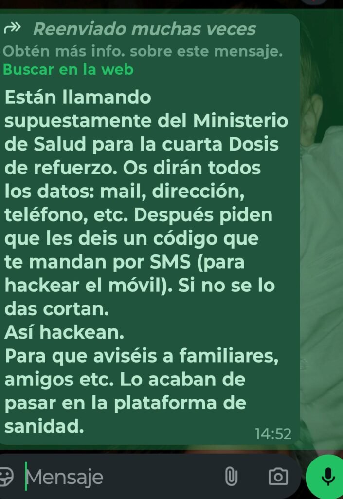 El bulo de la cuarta dosis: el falso mensaje que alerta de llamadas del “Ministerio de Salud”